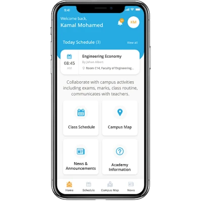 Mobile application for Ajman University students to access your course schedule for all types of classes, utilize mobile and wifi technologies to record your attendance in campus and remotely, leverage AU investment in infrastructure for getting turn-by-turn navigation direction while in campus. The application integrates with the university systems such as blackboard and others.