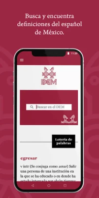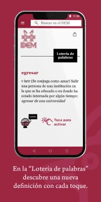 Debajo aparece una sección llamada Lotería de palabras, que escoge al azar uno de los vocablos contenidos en el diccionario. Esta Lotería busca despertar mayor interés por el contenido del diccionario. Cada vez que se abra esta pantalla, la Lotería seleccionará una nueva palabra. En el momento en que aparece la respuesta a la búsqueda, desaparece la Lotería.