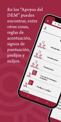 En Apoyos del DEM se ilustran las reglas de ortografía, acentuación y puntuación. Hay también una explicación del uso de cada uno de los tiempos verbales. Se ofrecen fichas acerca de los prefijos y sufijos. Además, se pueden encontrar listas de escritura de gentilicios de la República Mexicana, de los países hispanoamericanos y de los números.