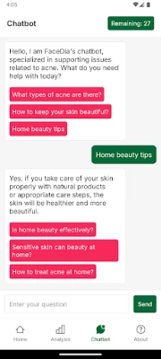We prioritize our users’ privacy; the image data used for diagnosis is anonymized and encrypted. We only use users’ images for the purpose of improving product quality. For any contributions to enhance the application, such as providing additional images of various types of acne or offering suggestions, please send your information to the email address: