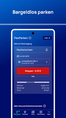 Mit FlexParken selbst die Parkdauer bestimmen. Minutengenau und flexibel mit der Start-/Stopp-Funktion.