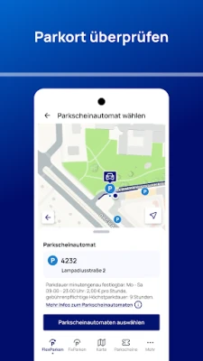Mit der integrierten Karte finden Sie jederzeit ohne Umwege zum eigenen Auto zurück – der Parkort wird im digitalen Parkschein gespeichert.